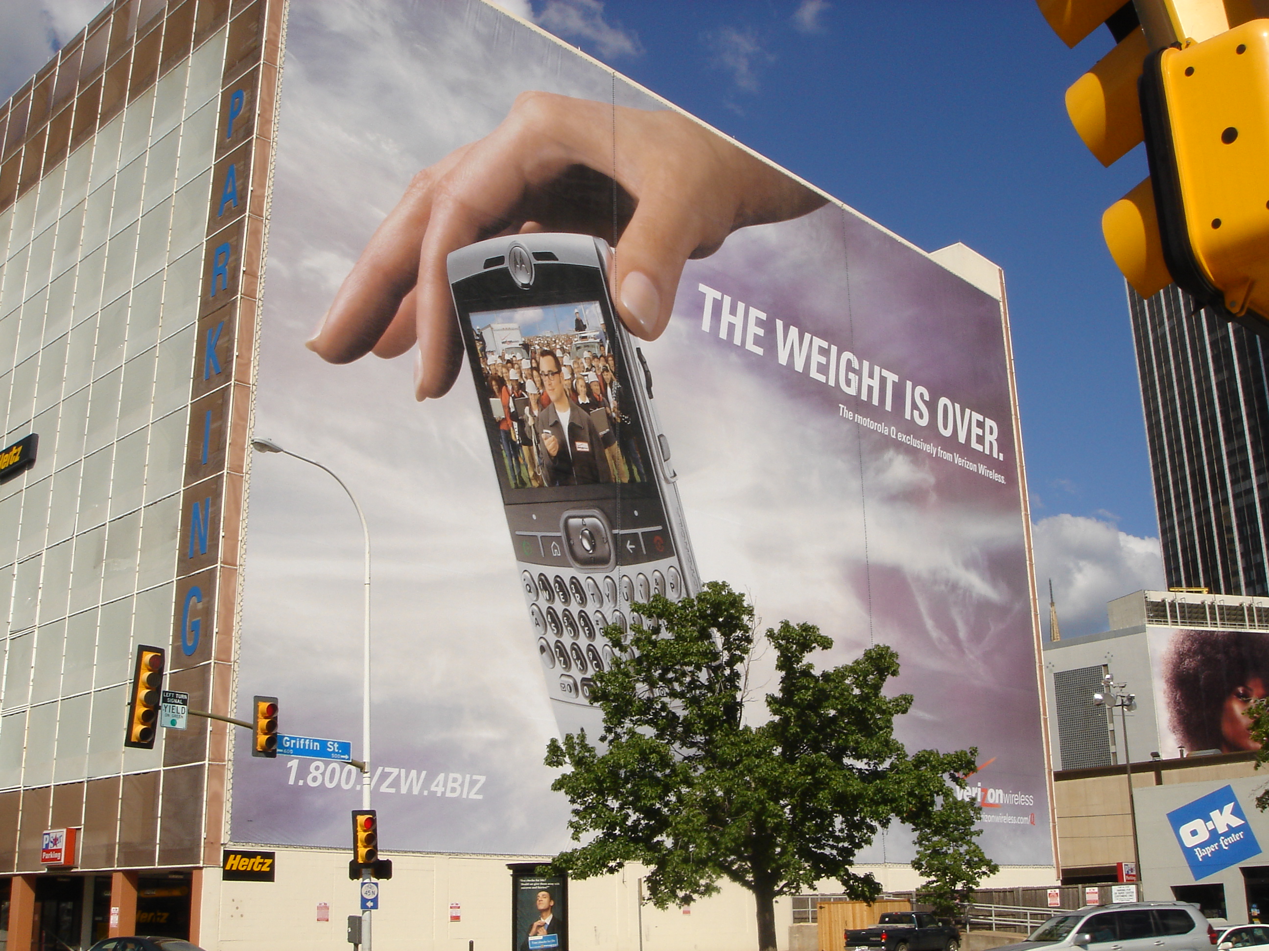 This is a billboard for the Q near where I live. There is another equally large billboard barely visible on the far right. Motorola is doing quite a job advertising this phone.