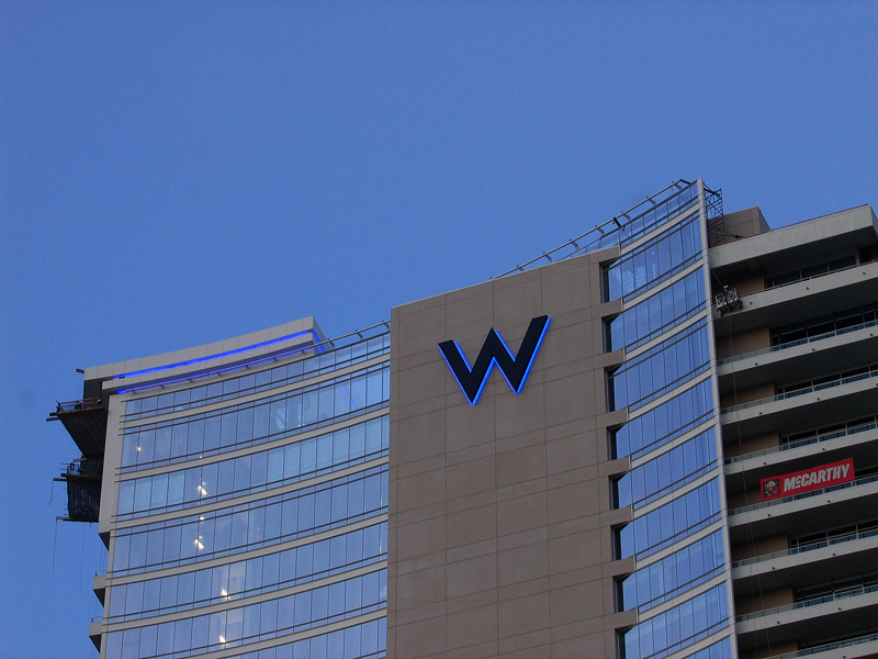 On the way home from the game I noticed they had turned on green and blue lights at the top of the W hotel. That is a new one...I hadn't seen lights on the W before. My pictures of it sucked, but I found some good pictures of it online (green and blue).