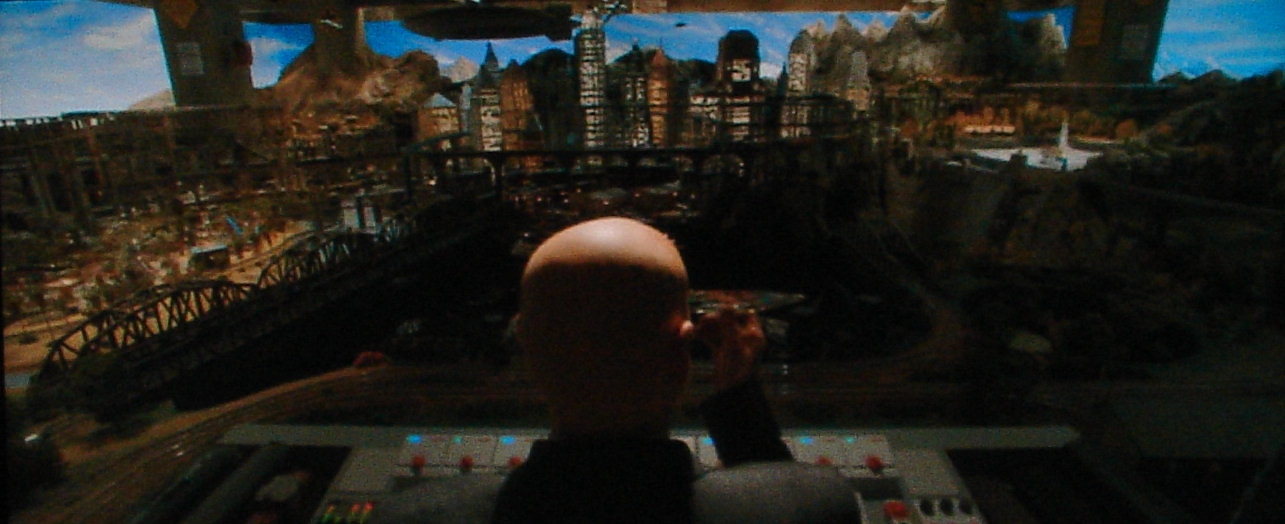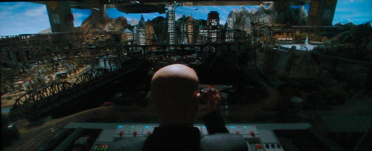 The next shot is of Lex Luthor in front of a elaborate model train setup. I chose this shot because it has a lot of detail.