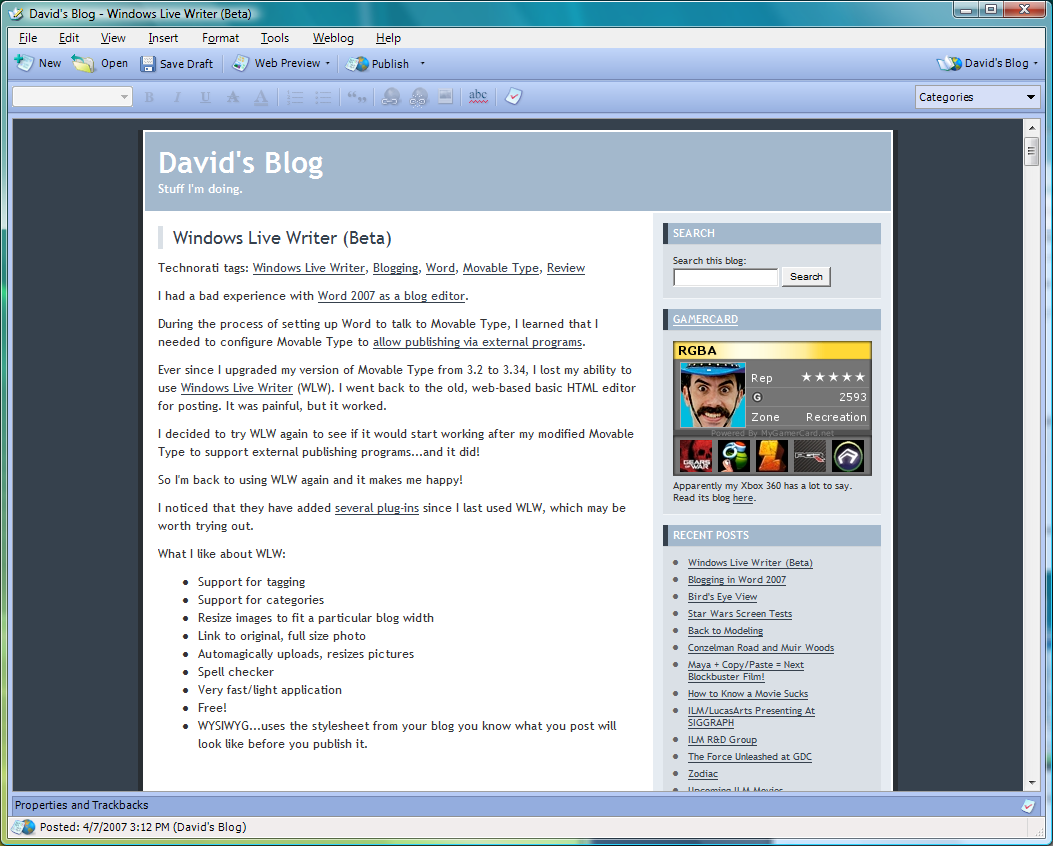 On Monday, I had to go back to work. Dad and Rosie met me for lunch at ILM. I had no problem getting them in. I took them around the buildings, showed them several movie props and matte background paintings used in movies. We ate in the cafeteria and then went to the company store to get some ILM/LucasFilm shirts. I took them around where I worked and showed them the concept art for the Star Wars game that covers our hallways.