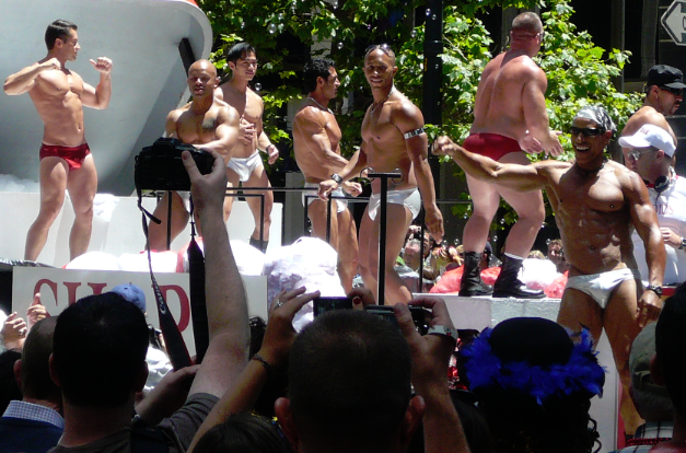 It was like a traditional street fair...only gay-er. Instead of old ladies trying to sell their candles, there were men with handlebar mustaches trying to sell calendars featuring photos of men's chests.