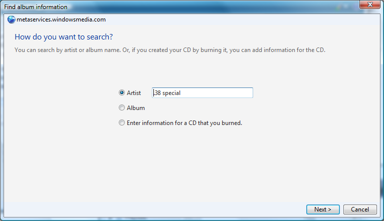It asked me how I wanted to search, so I gave it the artist name ".38 Special."