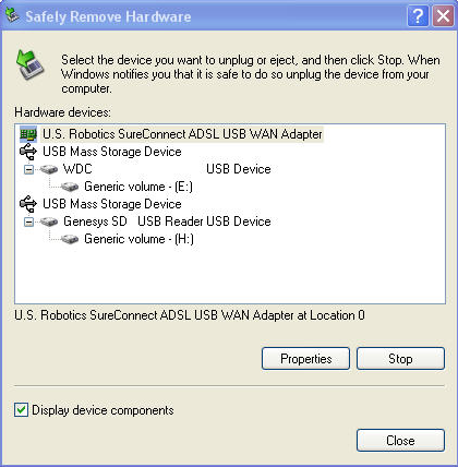The list is much easier to read now since each item has unique identifiable names (previously, everything was called “USB Mass Storage Device”). The old Safely Remove Hardware dialog is here…