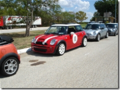 The next group had 4 MINI's in it. One of them was Gary from MC2 Magazine. We stopped at a gas station and took some pictures of our cars. 4 of the 5 MINI's were red, so we lined them up for some photos.